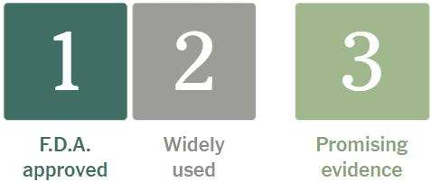 First thought was to look at therapeutics and treatments. There is one that is FDA approved, there are two widely-used practices and the FDA is looking at three others that are showing 'promising evidence'.